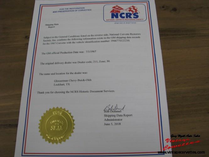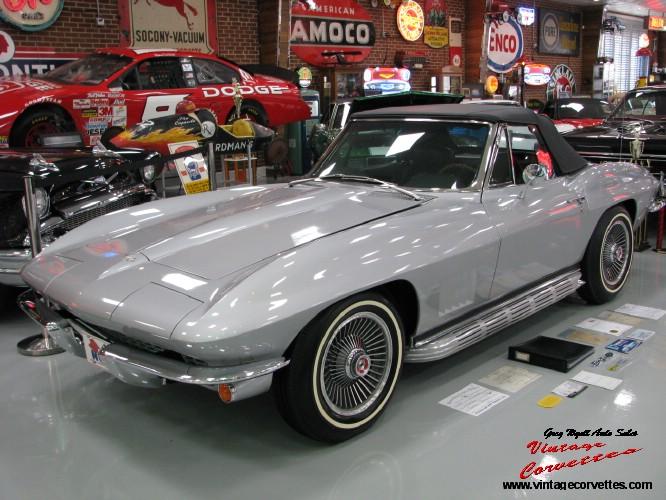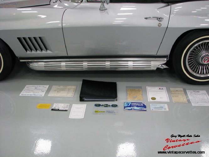<p>1967 Corvette Convt , Silver Pearl , Black Interior , Black Soft Top, All Correct matching Numbers 327-350hp , 4 Speed Cl Ratio, Power Steering , Power Brakes , Factory Air , Tinted Glass , Posi Rear 3.70 , Headrest Seats, Bolt On Wheels , White wall tires, Complete Frame off restored to Super show Condition , Restoration Photos, NCRS Shipping Data Report , Car Purchased New at Glosserman Chevrolet in Lockhart Tx , Show or drive this 1967 Factory Air Corvette , Repo for show purpose only Window Sticker , Tank Sticker, Car Shipper sheet , Sales Invoice , Owner manual , Radio card ) Best 1967 Factory Air 350hp Corvette on the Planet . www.vintagecorvettes.com 706 857-3916 706 506-5745 Sold</p>